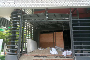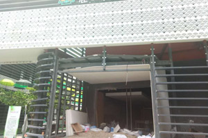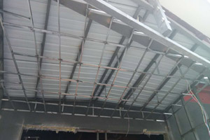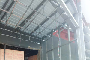 在通道兩側(cè)以及頂面用輕鋼龍骨焊接,并用水泥板盡心封堵,頂面用鋁板封堵,以達(dá)到防水目的。