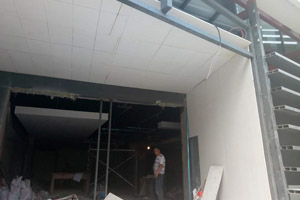 本工程位于北京市朝陽區(qū)望京西路夢秀商場一層底商。原外墻為鋼結(jié)構(gòu)裝飾,現(xiàn)在裝飾層處增開門洞,將外墻裝飾龍骨拆除,在門洞上方焊接鋼梁進(jìn)行加固。