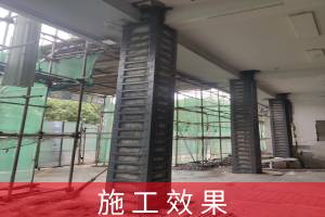 (6)施工內(nèi)容:對承載力、軸壓比和節(jié)點域不滿足要求的框架柱采用外包角鋼加固,涉及一層~三層共42根柱;對承載力不滿足要求的混凝土梁采用粘鋼加固,部分板底粘碳纖維布加固。