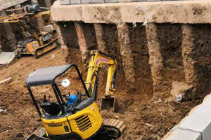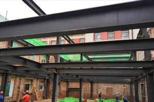 外墻內(nèi)側磚墻噴射混凝土加固、室內(nèi)新作條形基礎、新作鋼結構梁板板柱