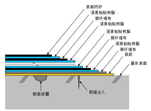 碳纖維布加固與加大混凝土截面及粘鋼包鋼加固相比,具有造價低,節(jié)省空間,施工簡便,施工質(zhì)量容易保證,在不增加結(jié)構(gòu)尺寸及自重的前提下,增加構(gòu)件的耐腐蝕、耐久性能。普遍用于梁、板、柱、墻體的裂縫修補加固處理、提高梁抗拉、抗彎性能及柱的抗壓性能和增加樓板的正負(fù)彎矩。