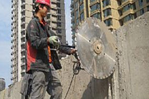 水鋸:一般洞口較大、開(kāi)完需做加固處理常用此方法,切割面平整,無(wú)需休整即可做加固處理。