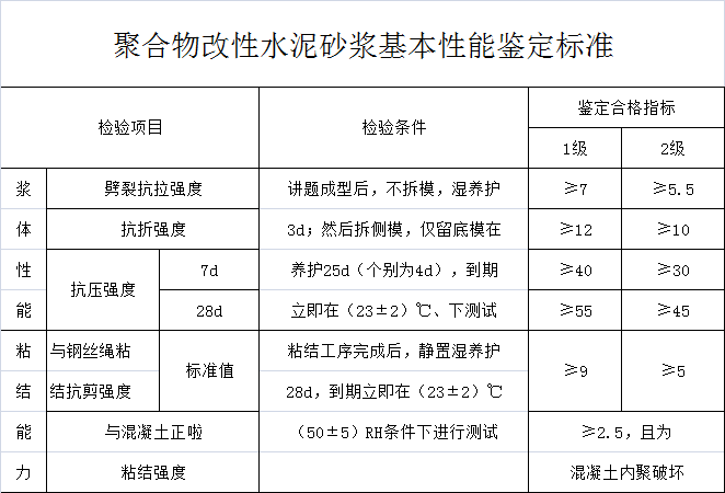 聚合物改性水泥砂漿基本性能鑒定標準